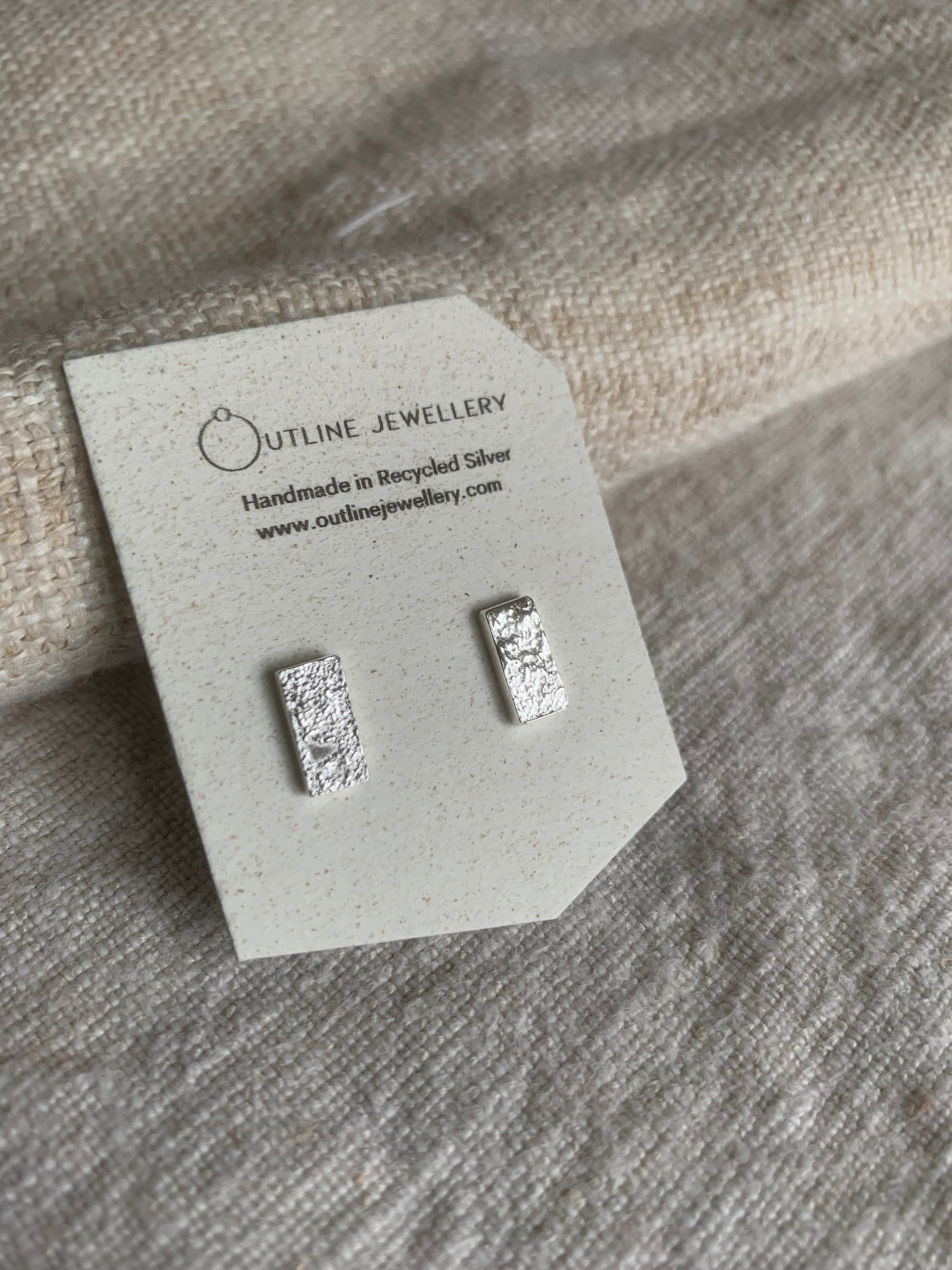 Rustic Rectangle Stud Earrings - Silver by Outline Jewellery