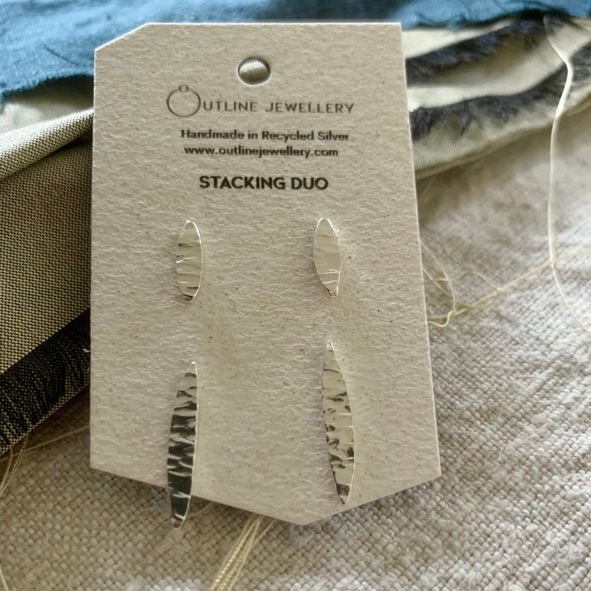 Handmade in the UK from recycled sterling silver, each shape is hand drawn and textured, making every set subtly unique.