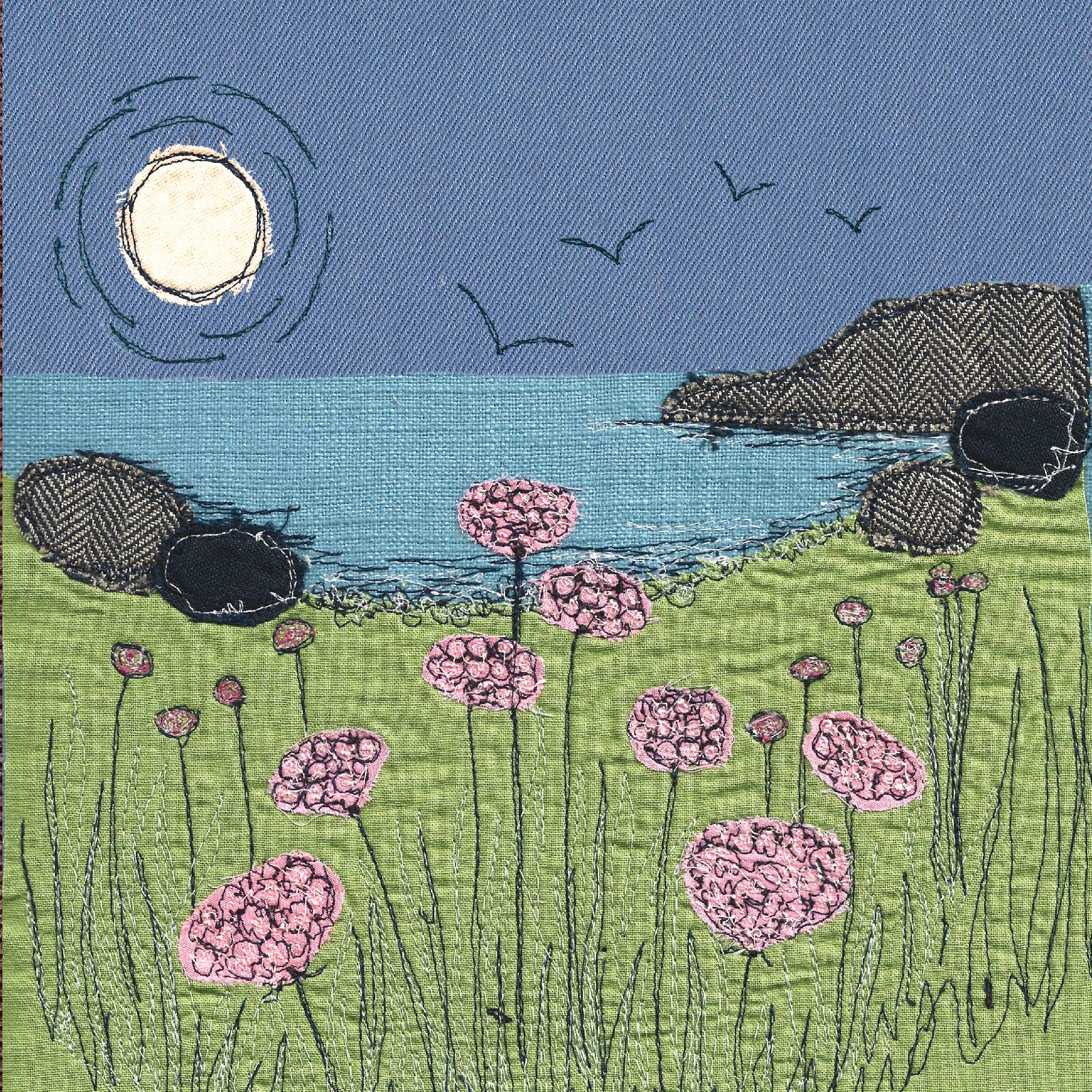 This Sea Pinks card brings a little piece of the Cornish coast into your home. Created from Poppy Treffry's own embroidery, it captures the wild beauty of the cliff tops where she walks Roscoe every day. Perfect for sending a thoughtful note or framing as a small piece of art.
