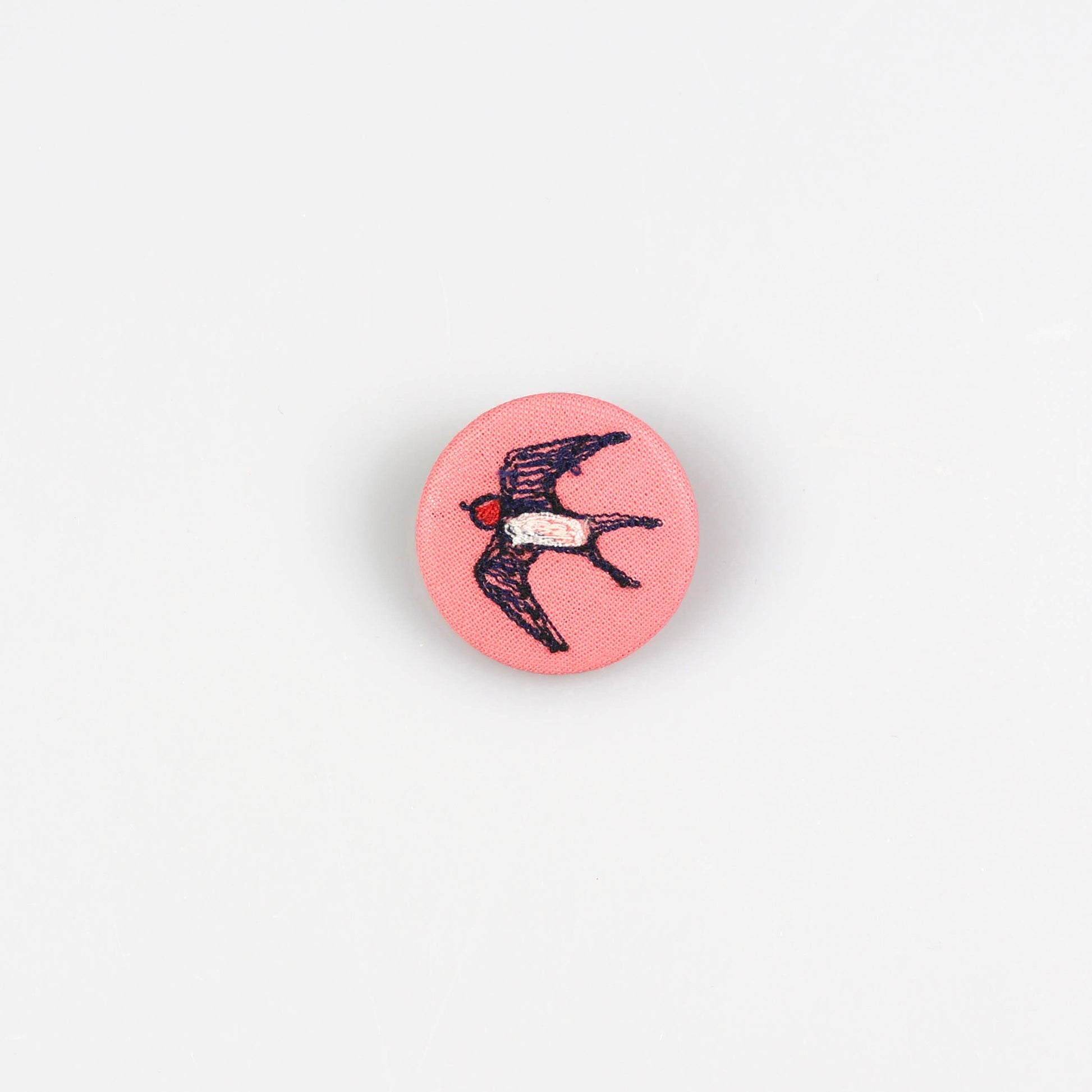 This swallow badge is a lovely little detail to add to jackets, bags or scarves. Set against a warm coral background, it brings a soft pop of colour and a touch of charm to everyday outfits.